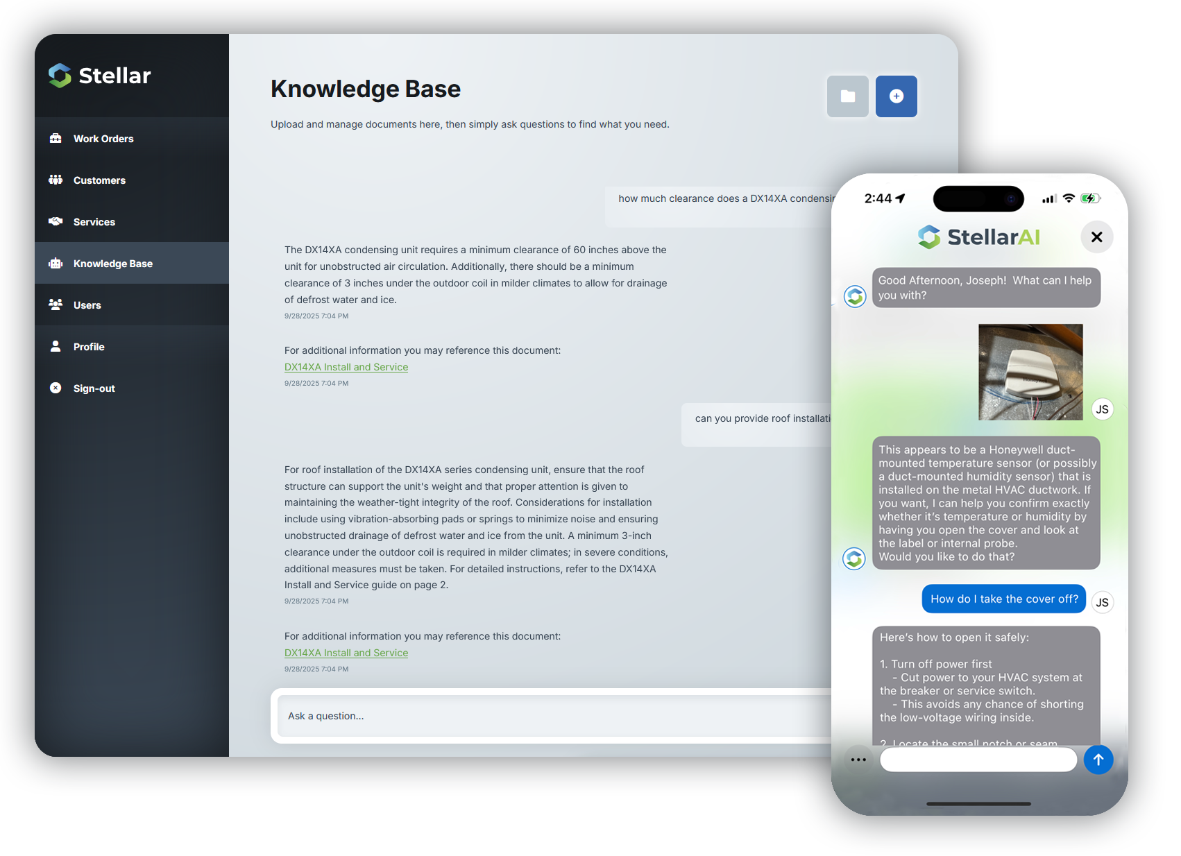 Stellar takes the hassle out of running your field operations through AI-driven tools that handle busywork for you. Think of Stellar as a bilingual teammate that can schedule jobs, track staff time, and instantly answer questions for your field teams.